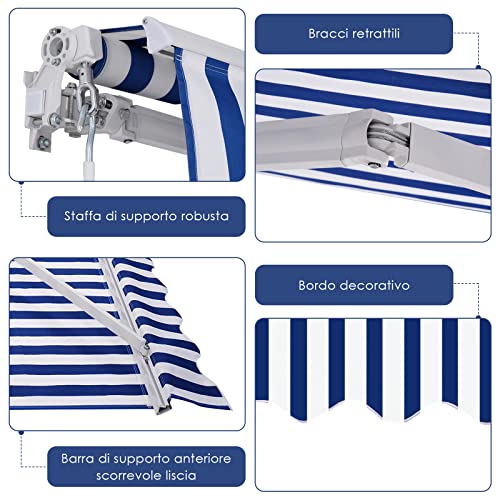 Goplus 3 x 2,5 M/2,5 x 2 M Tenda da Sole a Bracci Estensibili, a Parete/Soffitto(non incluso il kit), con Telaio in Alluminio, Manovella 120 cm e Telo Impermeabile (300 x 250 cm, Blu e Bianco)