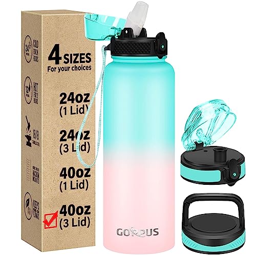 GOPPUS 1.2L/40oz Borraccia Inossidabile con Cannuccia Borraccia per Acqua Termica Fredda Borracce in Acciaio Doppia Parete Borracce Isolate Tenuta Stagna Borraccia per Adulti Flip Top con 3 Coperchi