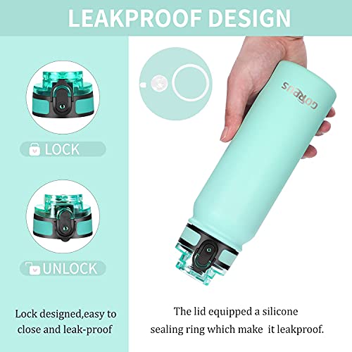 GOPPUS Borraccia Acciaio Inossidabile 600ml/20oz con Cannuccia Borraccia Sportiva Isolata Bottiglie d'Acqua in Metallo Ribaltabili a Doppia Parete Tenuta Stagna per Sport Palestra con 3 Coperchi