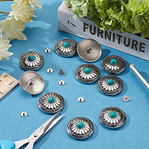 GORGECRAFT 10Pz Bottoni Turchesi A 1 Fori Conchos Occidentali Conchos Decorativi Rotondi in Metallo con Motivo A Girasoli per Valigie Fai da Te e Accessori Hardware
