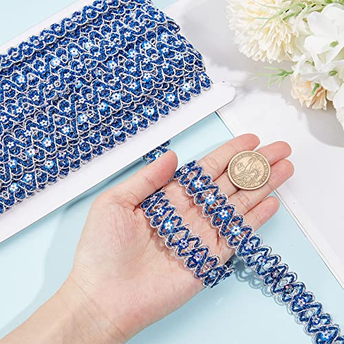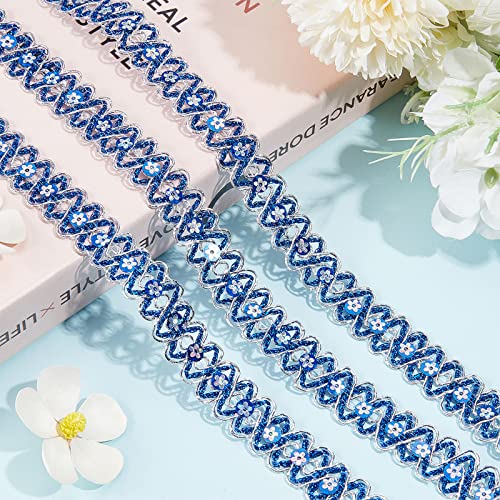 GORGECRAFT 14.2Yds Blu Sparkle Trim Nastro di Paillette Ondulato Paillette Lace Trims Fiore Sparkle Lace Trim Starlight Trim Bobina Metallic Glitter Treccia Trim per Cucire Abito di Natale Decorazione