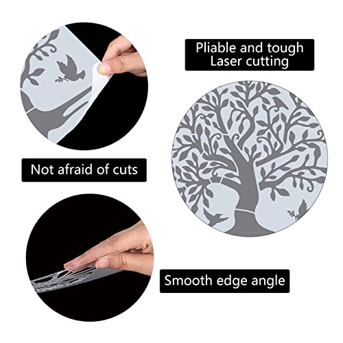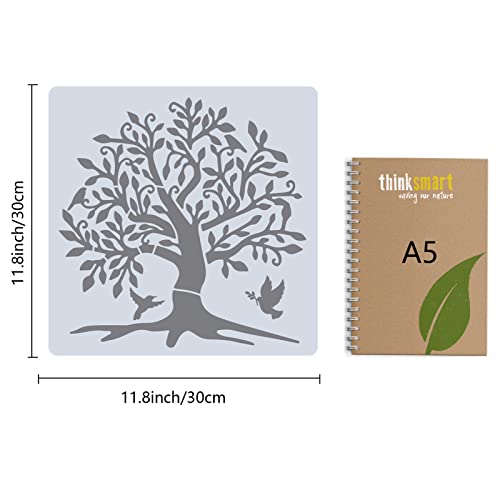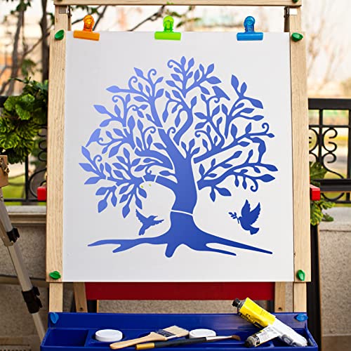 GORGECRAFT 30x30 cm Albero della Vita Stencil Modelli Albero Piccione Modello Grandi Stencil Quadrati Riutilizzabili Segno di Plastica per Dipingere su Legno Parete Mobili Tela Pavimento Strumento