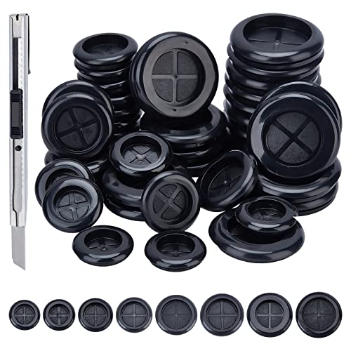 GORGECRAFT 40Pcs 8 Dimensioni Kit Passacavo Foro Chiuso Passacavi In Plastica Spina Foro Filo Parete Nero Rotondo Firewall Protezione Solido Guarnizione per Cavo Elettrodomestico Accessorio Automotive