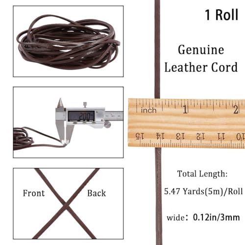 STRISCIA IN VERA PELLE LUNGA 5 METRO: Il cordone piatto in vera pelle color marrone cocco è lungo circa 5 metri, 3 mm di larghezza, 2 mm di spessore, lunghezza sufficiente per soddisfare le tue necessità quotidiane