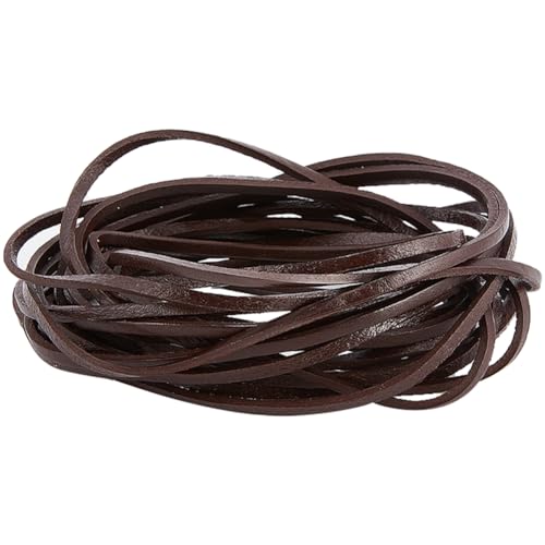 GORGECRAFT 5MX3mm Cordoncino Piatto In Vera Pelle Striscia di Pelle 2mm di Spessore Pelle di Vacchetta Stringa Corda per Intrecciare Filo per Bracciali Collane Creazione, Marrone Noce di Cocco