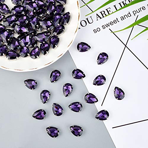 GORGECRAFT 80PCS Cucire su Strass, Gemme A Goccia di Cristallo Pietre Preziose Piatte con Strass Artiglio per Cucire per Gioielli Borsa per Vestiti Scarpe Abito, Porpora