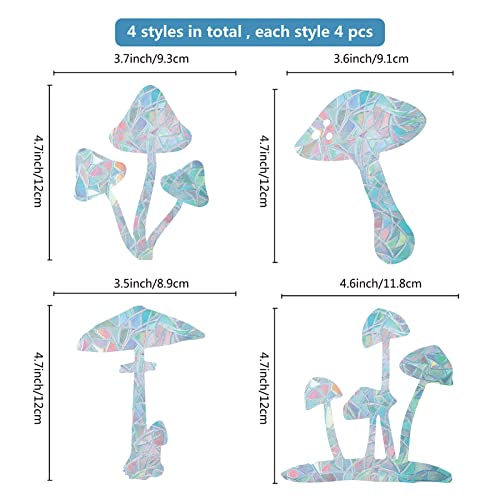 FILM PRISM: decalcomania della finestra di vetro 16PCS, ogni stile 4pc, dimensione: 3.7"x4.7" /9.3x12 cm, 3.6"x4.7" /9.1x12cm, 3.5"x4.7" /8.9x12cm, 4.6"x4.7" /11.8x12cm. Motivo a fungo di design e stampato leggermente traslucido in modo da catturare il sole.