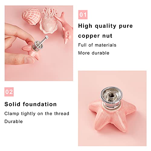 GORGECRAFT 4 Set Manopole per Armadietto in Ceramica Stella Marina Polpo Conchiglia Delfino Animali Marini Tema Oceano Stile Cartone Animato Manopole Fatte A Mano Comò Maniglie (Rosa)