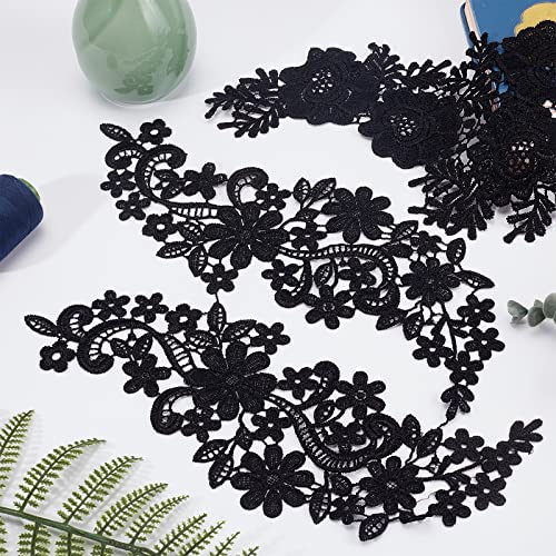 GORGECRAFT 2 Paia di Fiori Neri Toppe per Indumento Applique Ricamo Abito da Sposa Fai da Te Accessori di Abbigliamento per Cucire (Nero D)