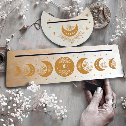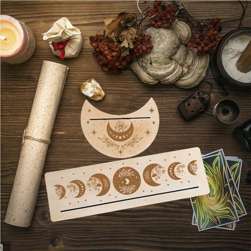 GORGECRAFT 2 PZ Supporto per Carte in Legno per Tarocchi 5" a Forma di Luna e 10" Rettangolari in Legno Tarocchi Supporto per Altare Strumenti di Divinazione Strega Forniture (Fase Lunare e Fiore)