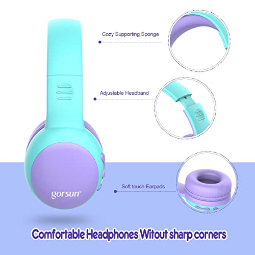 Gorsun Cuffie Bluetooth per Bambini, Limitatore audio a 85 dB, Bambini Cuffie Senza Fili Over Ear, Stereo Cuffie per Bambini con Microfono, Cuffie Pieghevoli per Ragazzi e Ragazze - viola