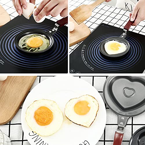 GOSHIES Mini padella da 12 cm, a forma di cuore, mini padella, portatile, mini padella, padella per uova, padella per arrosto, 5 stampi per fornelli a induzione