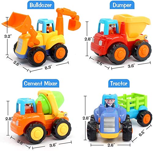 GoStock Auto Giocattoli Spingi e Vai in Auto Giocattoli di Veicoli di Costruzione Camion per Bambini Regalo per Bambino 1 2 3 Anni (Set di 4 elementi - Trattore, Bulldozer, Camion Betoniera, Dumper)
