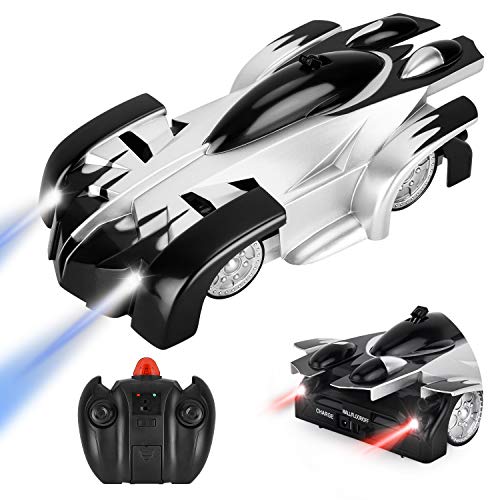GotechoD Macchina Telecomandata per Bambini con LED Luci Anteriore e Posteriore, 360° Rotazione Auto da Corsa può Scalare Il Muro USB Ricaricabile RC Auto Arrampica sulle Pareti (Nero)