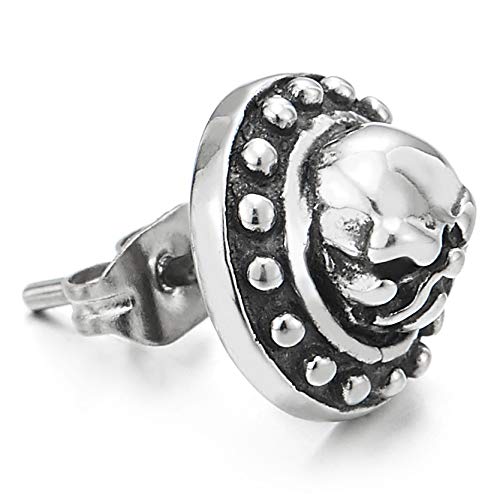 Gothic, Annata Cranio Teschio Punteggiati Cerchio Cupola Orecchini da Uomo, Orecchini a Lobo, Acciaio Inossidabile
