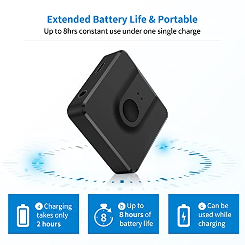 【Ricoppiamento automatico】- Basta premere a lungo l'interruttore, impostarlo sulla modalità desiderata, è possibile stabilire una connessione rapidamente e facilmente. Una batteria interna garantisce che l'adattatore Bluetooth possa essere utilizzato per un massimo di 10 ore e si connetta immediatamente a