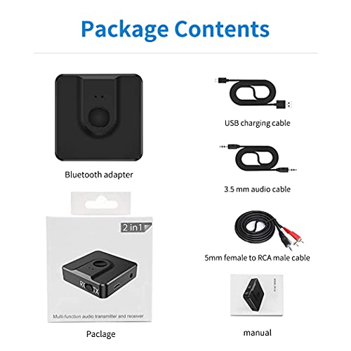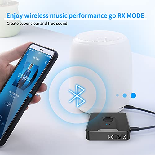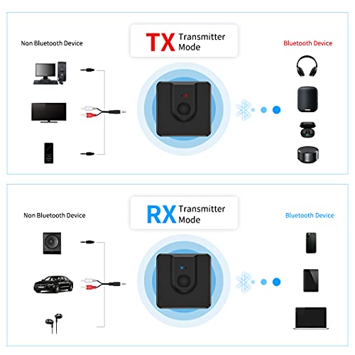 【Ricevitore trasmettitore Bluetooth 2 in 1】- Trasmettitore Bluetooth con supporto dual stream (modalità TX e modalità RX). La modalità ricevitore (luce blu) consente ai dispositivi non Bluetooth come gli stereo dell'auto o di casa di ricevere un suono di alta qualità da un dispositivo Bluetooth come un telefono. La modalità trasmettitore (luce rossa) trasforma i dispositivi multimediali di uscita audio da 3,5 mm in un dispositivo Bluetooth in grado di riprodurre in streaming audio Bluetooth