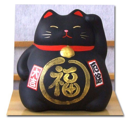 GOTO Maneki Neko Feng Shui Lucky Gatto nero per protezione, taglia media