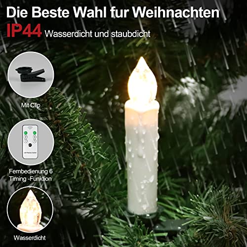 Gotoll Candele Natalizie a LED 30 pezzi Candele LED Senza Fiamma per Albero di Natale Candele Natalizie Senza Fili con Telecomando e Clips,Decorazioni Natalizie - Luce bianca calda