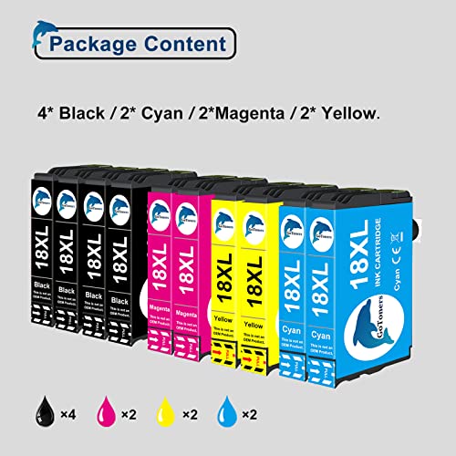 Contenuto: 4 cartucce nere, 2 ciano, 2 magenta, 2 gialla, confezione da 10 cartucce di inchiostro compatibili in sostituzione della confezione multipla Epson 18XL (NON originale).