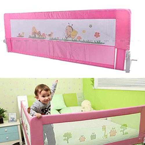 GOTOTOP Barriera per letto bambini 150cm, sponda per letto bambini sbarra letto, Barriera di sicurezza per letto bambino, portatile letto protezione pieghevole universale (rosa, 150x43x34.5cm)