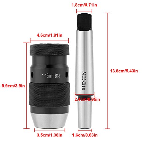 GOTOTOP M3-B18 0-16 mm Mandrino di foratura senza chiave, in acciaio 45#, Nero