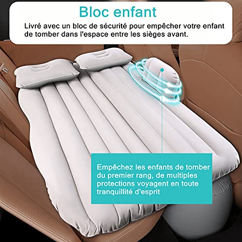 GOTOTOP Materasso gonfiabile, con 2 cuscini gonfiabili e pompa elettrica per sedile posteriore, auto, SUV, campeggio, carico fino a 150 kg, colore: Grigio