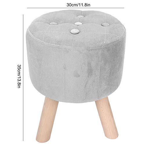 GOTOTOP Sgabello Rotondo in Velluto Sgabello Basso con Gambe In Legno Sgabello per scarpe Sgabello da Toilette Poggiapiedi 30x35 cm Portata: 100kg(grigio)