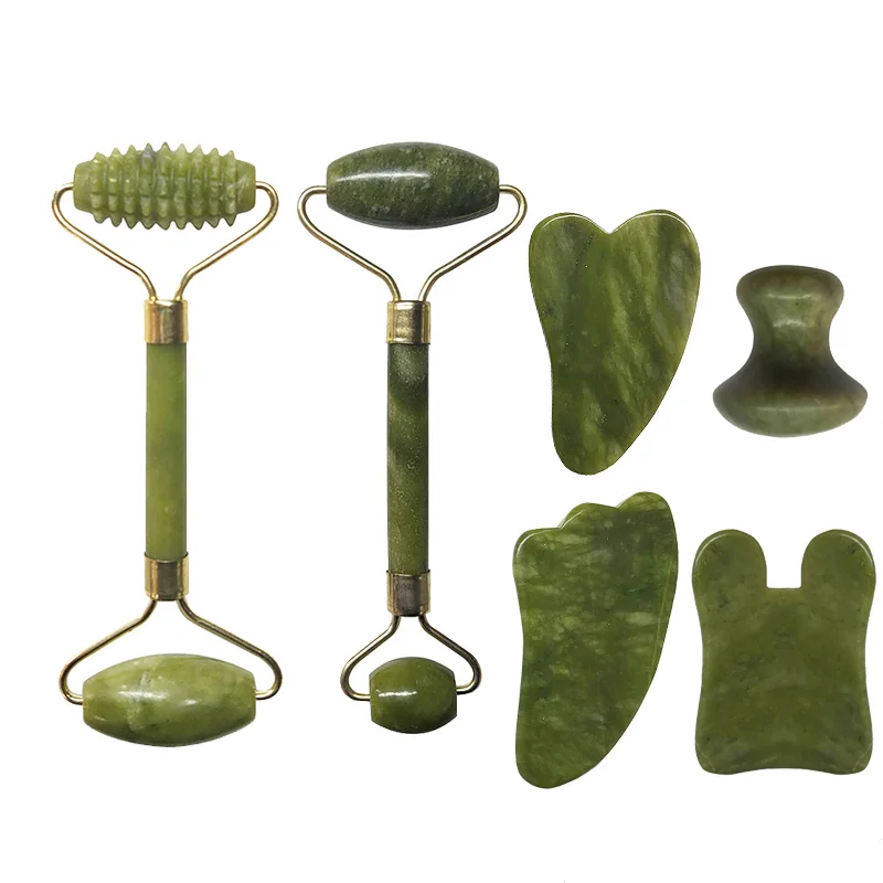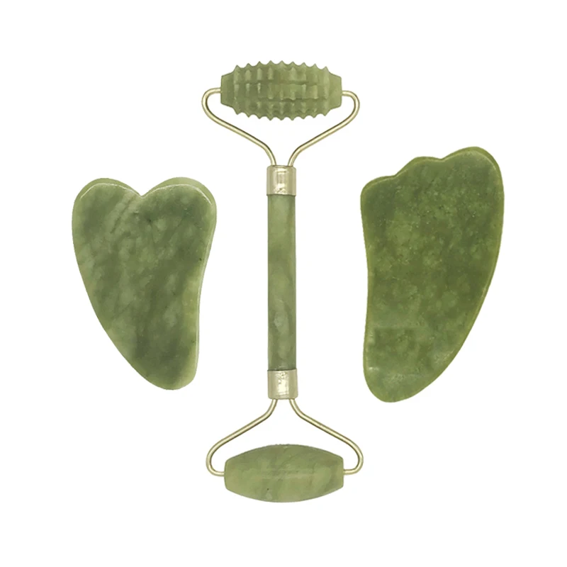 Gouache Scraper Jade Roller And Gua Sha Massage Tool Face Body Massager Relieves Facial Tension Jade Stone Healthy Skin Care Set