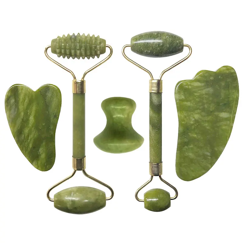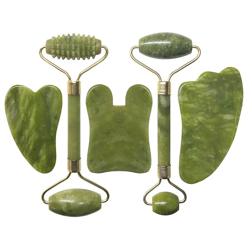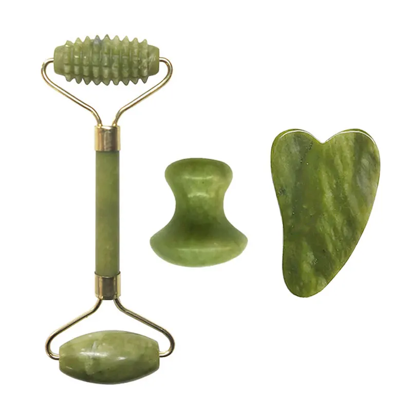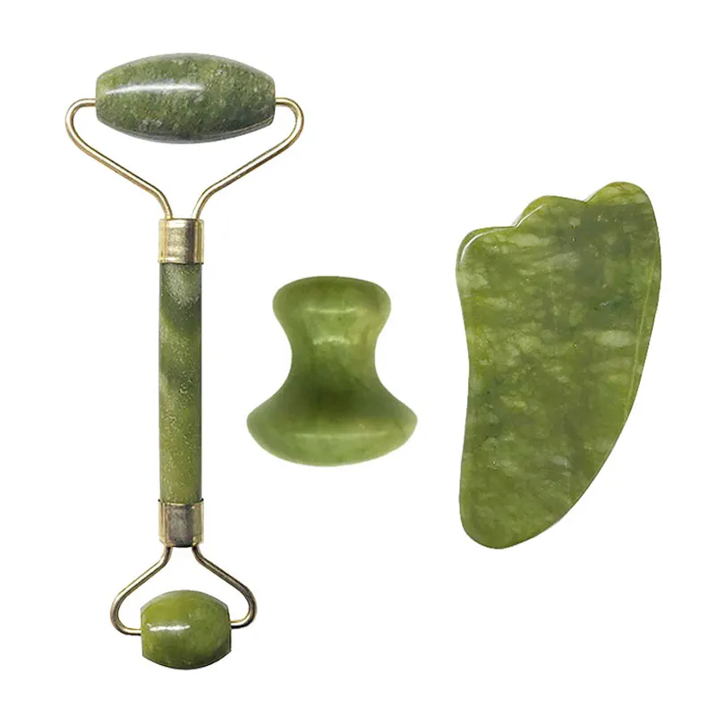 Gouache Stone Jade Roller Face Massager Gouache Scraper Set Natural Jade Facial Massage Roller Gua Sha Scraper Face Roller Hot