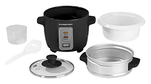 GOURMETmaxx 00608 cuoci riso con inserto per cottura a vapore 400 ML NERO (Con Misurino e funzione di mantenimento in caldo) nero/bianco