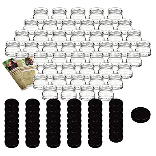 Gouveo Set di 48 vasetti "Mini" 30 ml con chiusura girevole TO 43 nero, vasetti di stoccaggio, vassoi di marmellata, conservazione vasetti, vasi di spezia, vasi invertenti
