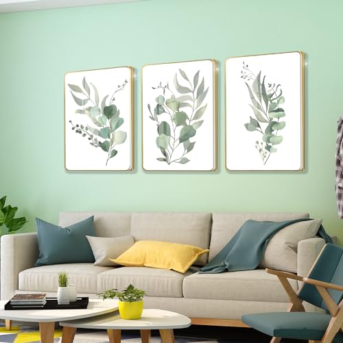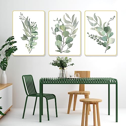 Quadri con cornice: il set di 3 immagini decorative Gouwgenr è composto da base resistente all'umidità + telaio in cloruro di polivinile, forte e durevole. La superficie del set di quadri da parete è rivestita con uno strato di pellicola protettiva di cristallo, la superficie della presentazione è lucida, liscia e riflettente, impermeabile e antipolvere. Il nostro set di immagini decorative con foglie verdi con motivi botanici portano vita alle pareti della vostra casa con una bella arte da parete.