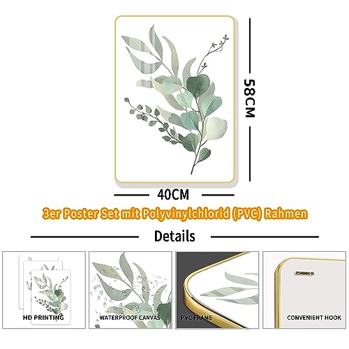 Gouwgenr 3 pezzi Poster in Stile Botanico 40x58m Stampe da Parete con PVC Cornice Moderna Poster Decorazioni da Muro per Camera da Letto, Soggiorno,Bagno-A813