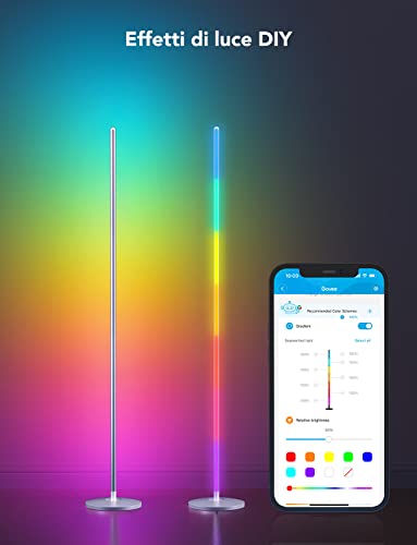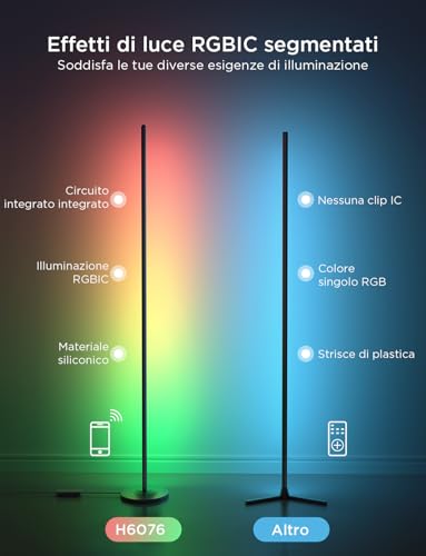 Colore RGBIC Dinamico: Libera la tua creatività con la tecnologia Govee RGBIC, puoi personalizzare ogni segmento di colore in base alla natura, al festival e alle emozioni e le strisce della lampada da terra visualizzeranno contemporaneamente effetti multicolori animati.