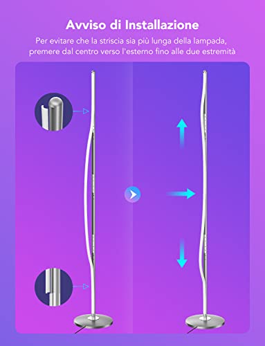 Controllo Intelligente: Gestisci la tua lampada da terra con i comandi vocali tramite Alexa, l'Assistente Google e l'APP Govee Home rende anche più comodo godere di più scene dinamiche come allegre, romantiche e DIY con colori diversi liberamente.