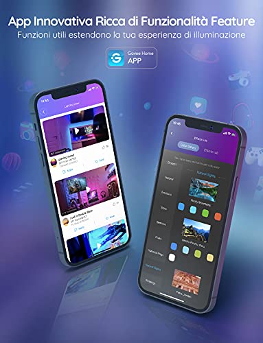 Funzionamento APP Più Conveniente: Controlla la LED striscia Govee tramite una connessione Bluetooth. Nell'app Govee Home, possiamo personalizzare le modalità musicali, le modalità scena, gli effetti creativi DIY, i timer e altre funzioni della striscia LED.
