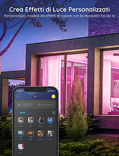 Molteplici Opzioni di Scena Intelligenti: Con 64 modalità di scena e 4 categorie Naturale, Festival, Vita, Emozione. La striscia led intelligente può trasformare il nostro spazio e creare un'atmosfera da sogno in base alle nostre esigenze.