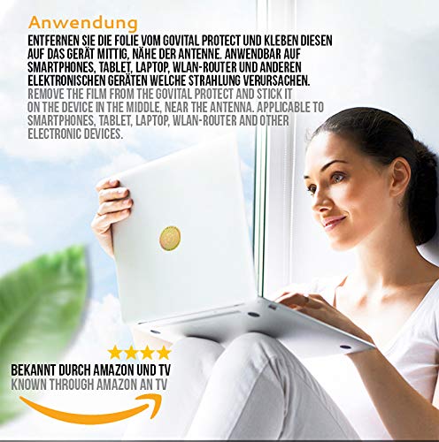 Utilizzo versatile: si attacca a telefoni cellulari, computer, router WLAN, microonde, TV e videogiochi, fornelli a induzione e molti altri dispositivi elettronici. Può anche essere applicato su bottiglie, bicchieri e caraffe per armonizzare acqua e bevande. Il goVital Protect è resistente agli spruzzi d'acqua. I clienti utilizzano GoVital Protect anche sulle catene di animali domestici per proteggere gli animali dalle frequenze nocive.