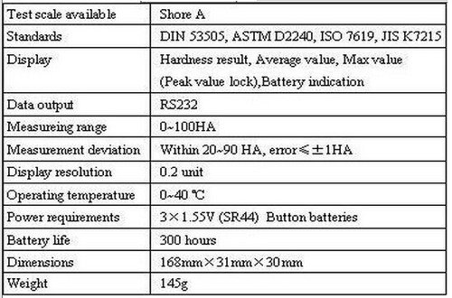 standard: DIN 53505, ASTM D 2240, ISO 7619, JIS k7215;