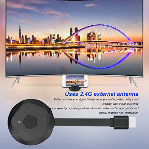 Qualità dell'immagine HD: l'adattatore per display WiFi supporta l'uscita grafica 1080P e l'uscita audio. Il processore ad alta velocità fornisce video e immagini di qualità estremamente nitidi e riduce notevolmente la generazione di calore. Con l'antenna esterna 2.4G, il segnale è stabile, senza ritardi e ritardi.