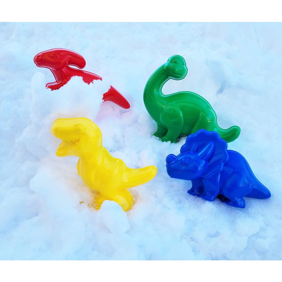 Dettagli del prodotto: Età: da 12 mesi Il set è composto da quattro dinosauri di colori diversi. Gli stampi possono essere riempiti con Sand o anche con la neve e pressati con forza. Non appena li si gira, appaiono dei dinosauri fantastici. Una particolarità light dei dinosauri è che stanno in piedi da soli e i bambini possono giocare con loro a divertenti giochi di ruolo. Dimensioni e peso: Dimensioni da assemblato (lunghezza x larghezza x altezza): 20 x 24 x 1 cm Peso: 0,14 kg Materiale e cura: Materiale: PP Le robuste forme di dinosauro sono realizzate con materiali di alta qualità e non tossici. Anche dopo l'uso in spiaggia, possono essere puliti facilmente.