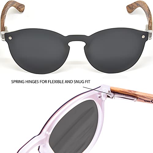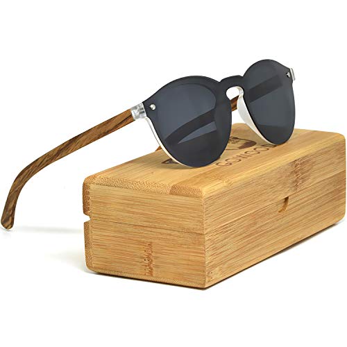 GOWOOD Occhiali da sole rotondi in legno zebrato per donne e uomini con lente polarizzata nera speciale in stile monopezzo