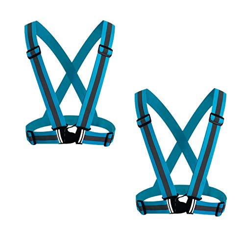 GOZAR 2 Pezzi Riflettente Attrezzatura Sicurezza Veste con 360°Alto visibilità Veste con Regolabile Elastico Cintura per Corridori Donne Uomini Notte Escursionisti Motociclisti-Azzurro