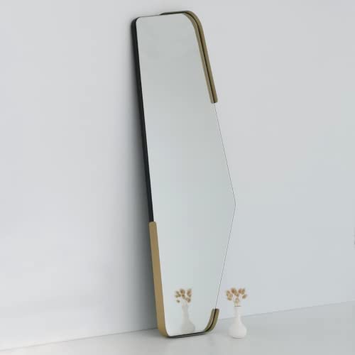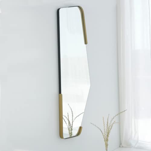 Gozos Gold Irregular Specchio da parete con cornice in metallo dorato | con materiale di montaggio incluso | Ideale come oggetto decorativo in soggiorno, bagno, specchio per il trucco | 120 x 44 cm