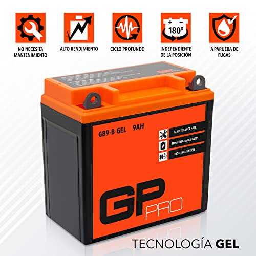 GP-PRO GB9-B 12V 9Ah GEL Batteria di avviamento (compatibile con YB9-B / 50914) (Esente da manutenzione/Sigillato) Moto Scooter Accumulatore