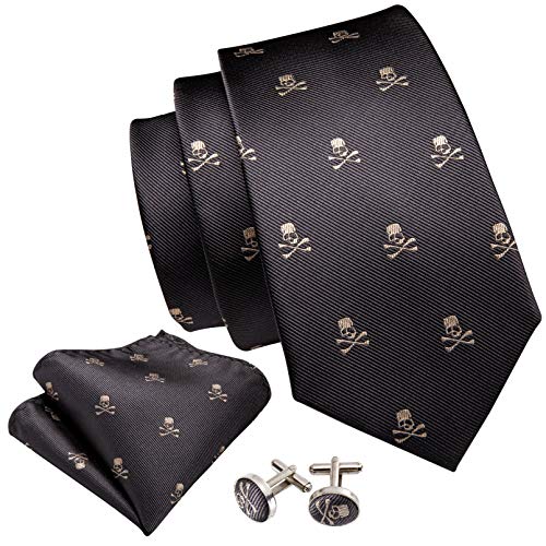 GPZFLGYN Cravatta uomo teschio marrone cravatta oro spilla cravatta seta fazzoletto regalo per uomo cravatta da lavoro da uomo