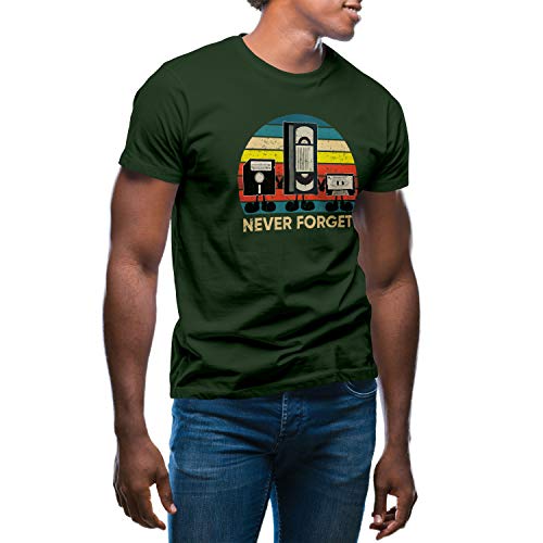 GR8Shop Retro Never Forget Cassete Flopy T-Shirt Verde Militare da Uomo Size L
