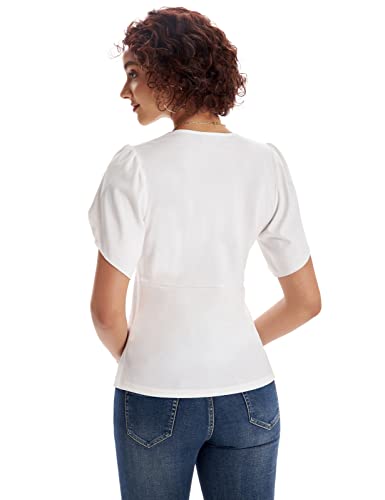 GRACE KARIN Camicetta Manica Corta Donna Elegante Camicetta Girocollo Polsini con Volant Vintage Bianco S