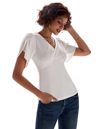 Elegante top da donna con maniche corte a petale, maniche corte a petale, stile svasato.